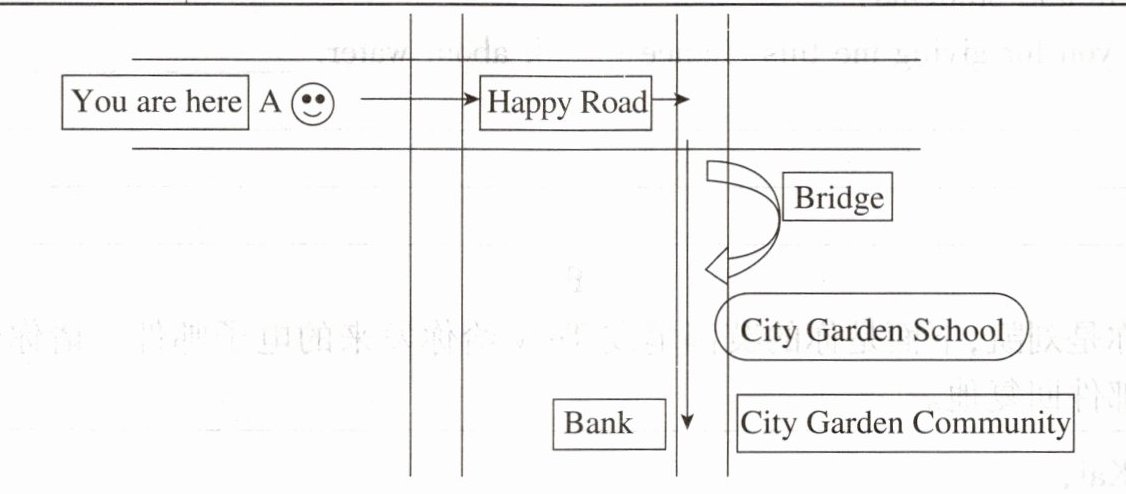 Now let me tell you how to get there. Go across Happy Road, then turn right. You'll go across a bridge, and you will see City Garden School. City Garden Community is next to the school, just opposite the bank.