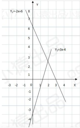 7. 求直线$y_1 = - 2x + 6$与$y_2 = 3x - 4$与x轴和y轴的交点,并在同一平面直角坐标系中画出这两条直线。