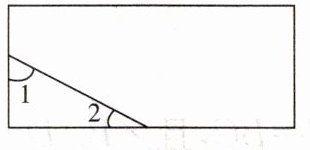 1. 如图,一个矩形纸片,剪去部分后得到一个三角形,则图中$∠1+∠2$的度数是(