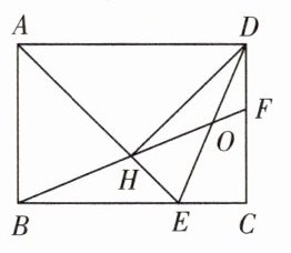 5. 如图,在矩形$ABCD$中,$AD= \sqrt{2}AB$,$∠BAD的平分线交BC于点E$,$DH⊥AE于点H$,连结$BH并延长交CD于点F$,连结$DE交BF于点O$,下列结论: