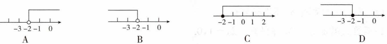 4. 在数轴上表示不等式 $ x > -2 $ 的解集,正确的是 ()