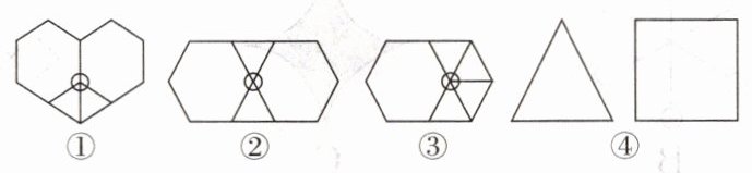故铺法有:①2 个正三角形和 2 个正六边形密铺;②4 个正三角形和 1 个正六边形密铺.