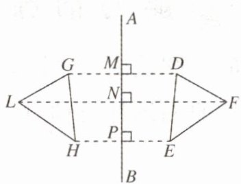 ,得$\triangle DEF关于直线AB的对称图形\triangle GHL$.