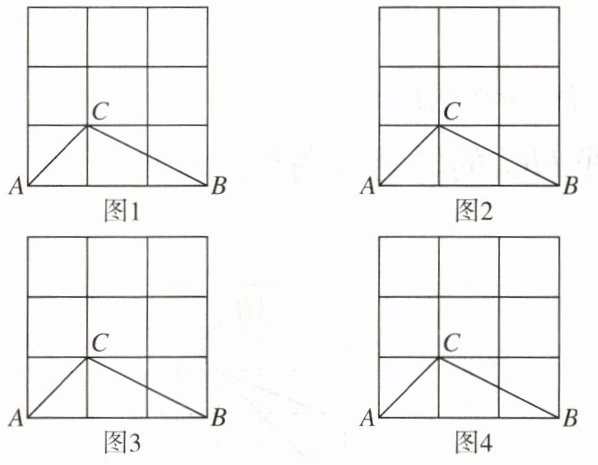 7. 在$3× 3$的正方形格点图中,有格点$\triangle ABC和\triangle DEF$,且$\triangle ABC和\triangle DEF$关于某直线成轴对称,请在下面给出的图中画出$4个这样的\triangle DEF$.