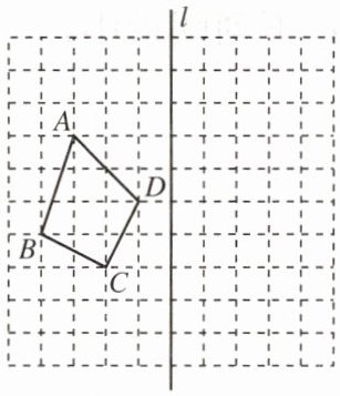 请你在所给的网格中画出四边形$A'B'C'D'$,使四边形$A'B'C'D'和四边形ABCD关于直线l$对称,其中点$A'$、$B'$、$C'$、$D'分别是点A$、$B$、$C$、$D$的对称点.