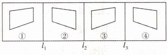 3. 小明把一张长方形纸片对折两次,画上一个四边形,再剪去这个图形(镂空),展开长方形纸,得到如下的图案,设折痕为$l_{1}$、$l_{2}$、$l_{3}$,观察图并填空: