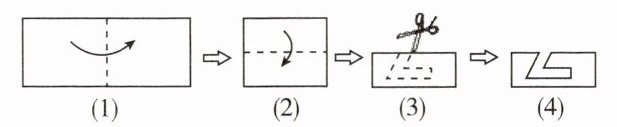 1. 一长方形纸片按图中(1)、(2)所示的方式对折两次后,再按(3)中的虚线裁剪,则(4)中的纸片展开铺平后的图形是 (