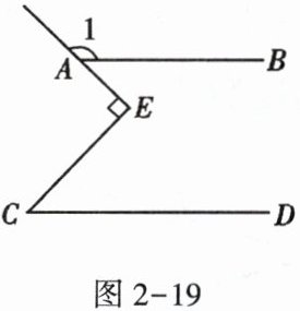 5. 如图2-19,已知直线$AB// CD$,$∠1=136^{\circ}$,$∠E$为直角,则$∠C$等于()