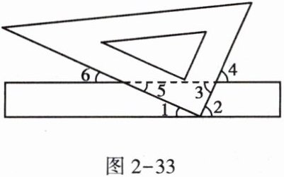 11. 将直尺与三角尺按如图2-33所示的方式叠放在一起。在图中标记的角中,写出所有与$∠1$互余的角。