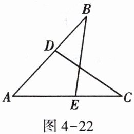 2. 如图4-22,已知点$D$在$AB$上,点$E$在$AC$上,且$∠B = ∠C$,那么补充下列一个条件后,仍无法说明$\triangle ABE≌\triangle ACD$的是( )