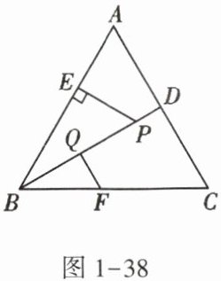 4. 如图1 - 38,△ABC是等边三角形,P是∠ABC的平分线BD上一点,PE⊥AB于点E,线段BP的垂直平分线交BC于点F,垂足为Q.若BF = 2,则PE的长为( )