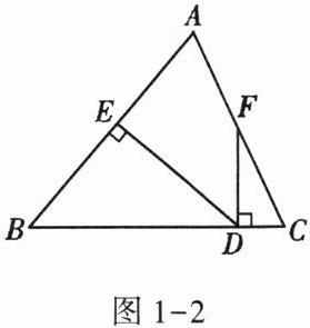 5. 如图1 - 2,在△ABC中,AB = BC,DE⊥AB于点E,FD⊥BC于点D,交AC于点F.