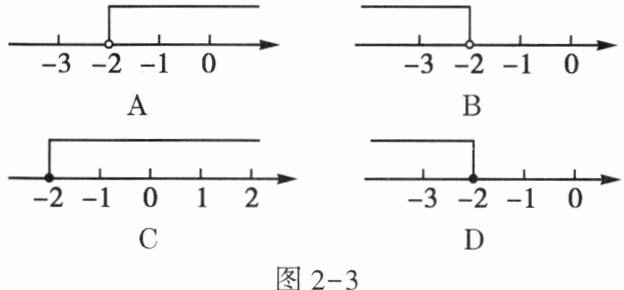 2. 在数轴上表示不等式$-2x ≤ 4$的解集,正确的是图2 - 3中的( )