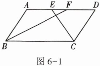 1. 如图6-1,在$\square ABCD$中,BF平分$\angle ABC$,交AD于点F,CE平分$\angle BCD$,交AD于点E,$AB = 6$,$EF = 2$,则BC长为()