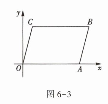 3. 如图6-3,将$\square ABCO$放置在平面直角坐标系$xOy$中,O为坐标原点,若点A的坐标是$(6,0)$,点C的坐标是$(1,4)$,则点B的坐标是______.