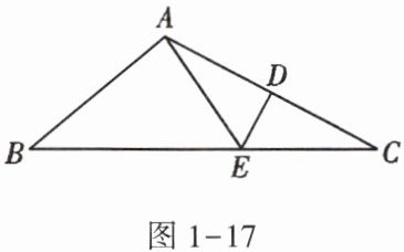 1. 如图1 - 17,在△ABC中,∠B = 40°,AC的垂直平分线交AC于点D,交BC于点E,且∠EAB : ∠CAE = 3 : 1,则∠C等于( )