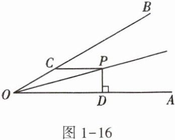 5. 如图1 - 16,∠AOB = 30°,OP是其角平分线,PC//OA,PD⊥OA,若PD = 1,求PC的长度.