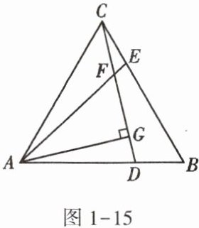 3. 如图1 - 15,在等边三角形ABC中,D,E分别为AB,BC边上的两动点,且总使AD = BE,AE与CD交于点F,AG⊥CD于点G,则$\frac{FG}{AF}$的值为______.