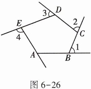 4. 如图6-26,$\angle 1$,$\angle 2$,$\angle 3$,$\angle 4$是五边形ABCDE的4个外角,若$\angle EAB = 120^{\circ}$,则$\angle 1 + \angle 2 + \angle 3 + \angle 4$等于()