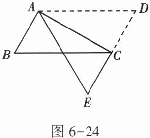 1. 如图6-24,在$\square ABCD$中,将$\triangle ADC$沿AC折叠后,点D恰好落在DC的延长线上的点E处.若$\angle B = 60^{\circ}$,$AB = 3$,则$\triangle ADE$的周长为()