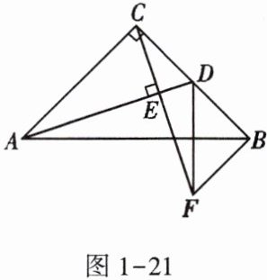 5. 如图1 - 21,在Rt△ABC中,∠ACB = 90°,AC = BC,D为BC边上的中点,CE⊥AD于点E,BF//AC交CE的延长线于点F,连接DF,求证:AB垂直平分DF.