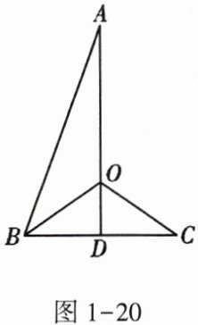 4. 如图1 - 20,AD⊥BC于点D,D为BC的中点,连接AB,∠ABC的平分线交AD于点O,连接OC,若∠AOC = 125°,则∠ABC的度数为______.