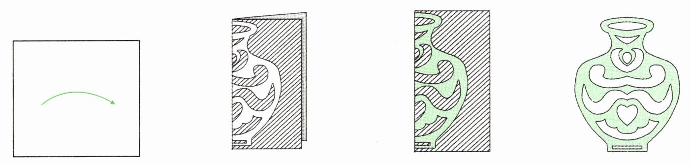 剪纸美丽又有趣,请你按下面的步骤,制作一个剪纸花瓶吧。做好后,记得向家长展示一下。