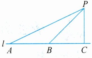 3. 如图,直线 $ l $ 上有 $ A $、$ B $、$ C $ 三点,直线 $ l $ 外有一点 $ P $,若 $ PA = 5 \text{ cm} $,$ PB = 3 \text{ cm} $,$ PC = 2 \text{ cm} $,那么点 $ P $ 到直线 $ l $ 的距离(