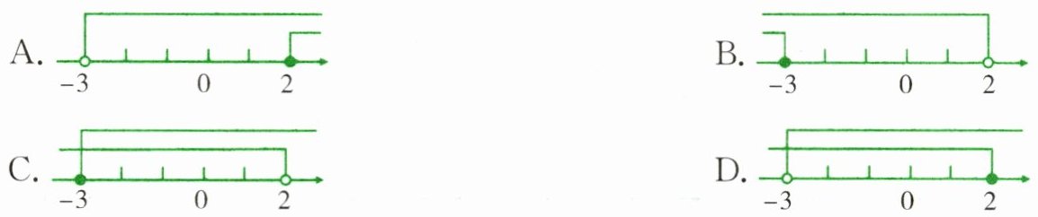 (内蒙古赤峰最新中考题)解不等式组 $ \begin{cases} 3x - 2 < 2x, ① \\ 2(x + 1) \geq x - 1. ② \end{cases} $ 时,不等式①和不等式②的解集在数轴上表示正确的是(