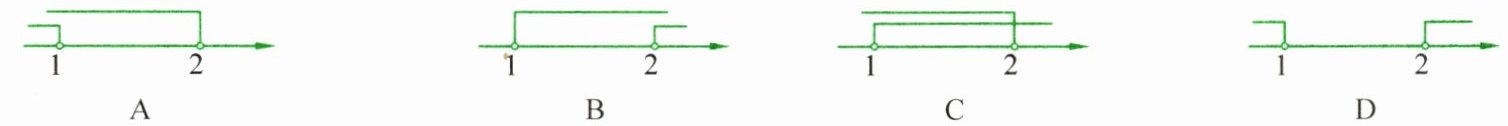 2. 不等式组 $ \left\{ \begin{array} { l } { 2 x + 3 > 5, } \\ { 3 x - 2 < 4 } \end{array} \right. $ 的解集在数轴上可表示为(