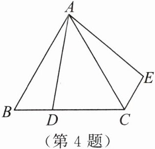 4. 如图,在等边三角形ABC中,$AB= 6$,D是BC上一点,且$BC= 3BD,△ABD$绕点A旋转后得到$△ACE$,则$CE= $____