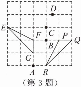 3. 如图,在正方形网格中,$△EFG绕某一点旋转某一角度得到△RPQ$,则旋转中心可能是(
