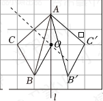 (1)在图中画出与$△ABC$关于直线l成轴对称的$△AB'C';$