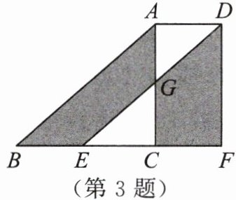 3. 如图,两个形状、大小完全相同的$\triangle ABC和\triangle DEF$重叠在一起,固定$\triangle ABC$不动,将$\triangle DEF$向右平移,当点$E和点C$重合时,停止移动。在移动过程中,设$DE交AC于点G$。给出下列结论:①四边形$ABEG的面积与四边形CGDF$的面积相等;②$AD// EC$,且$AD= EC$。则(