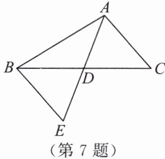 7. 如图,$D是\triangle ABC的边BC$的中点,连接$AD并延长到点E$,使$DE= AD$,连接$BE$。