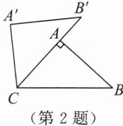 2. 如图,在直角三角形$ABC$中,$∠BAC= 90^{\circ}$。将直角三角形$ABC绕点C按逆时针方向旋转48^{\circ}得到直角三角形A'B'C$,点$A在边B'C$上,则$∠B'$的大小为(