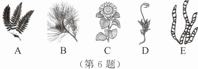 6. 如图所示是几种生物,请分析并回答下列问题。
