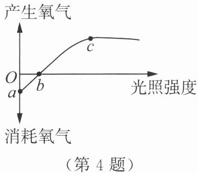 4. 如图所示为草莓在不同光照强度下单位时间内产生氧气量与消耗氧气量(不考虑温度因素)。下列说法错误的是(