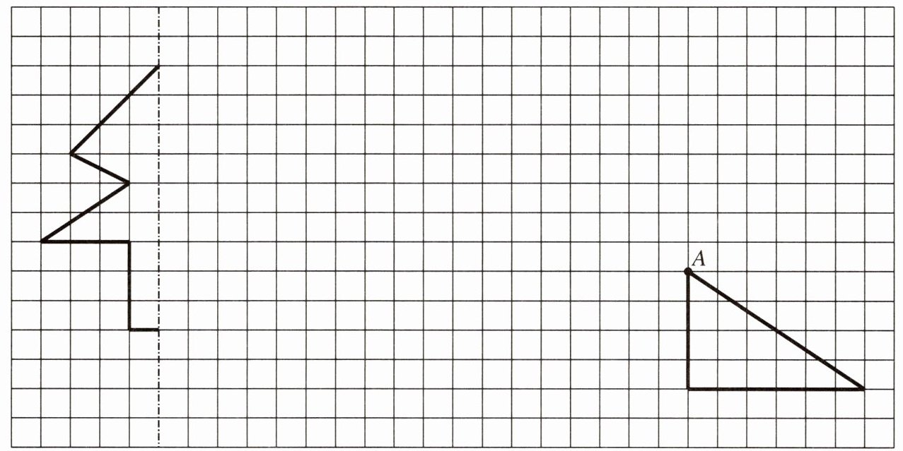 2. 把右图绕点$A$顺时针旋转$90^{\circ}$,再向上平移$6$格。