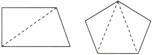 3. 如图,四边形从一个顶点出发能画1条线段,五边形从一个顶点出发能画2条线段……照这样,( )边形从一个顶点出发能画6条线段,它的内角和是( )$^{\circ }$。
