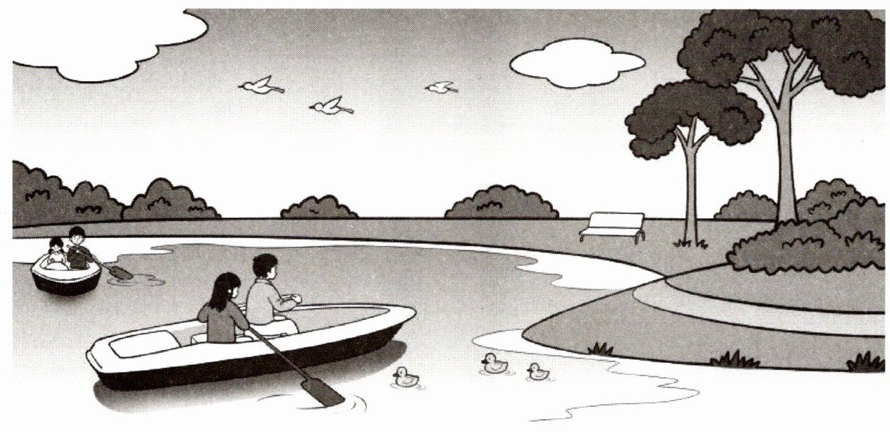 1. I/We can see some boats and ducks. 2. No, I can’t. 3. Yes, I can.