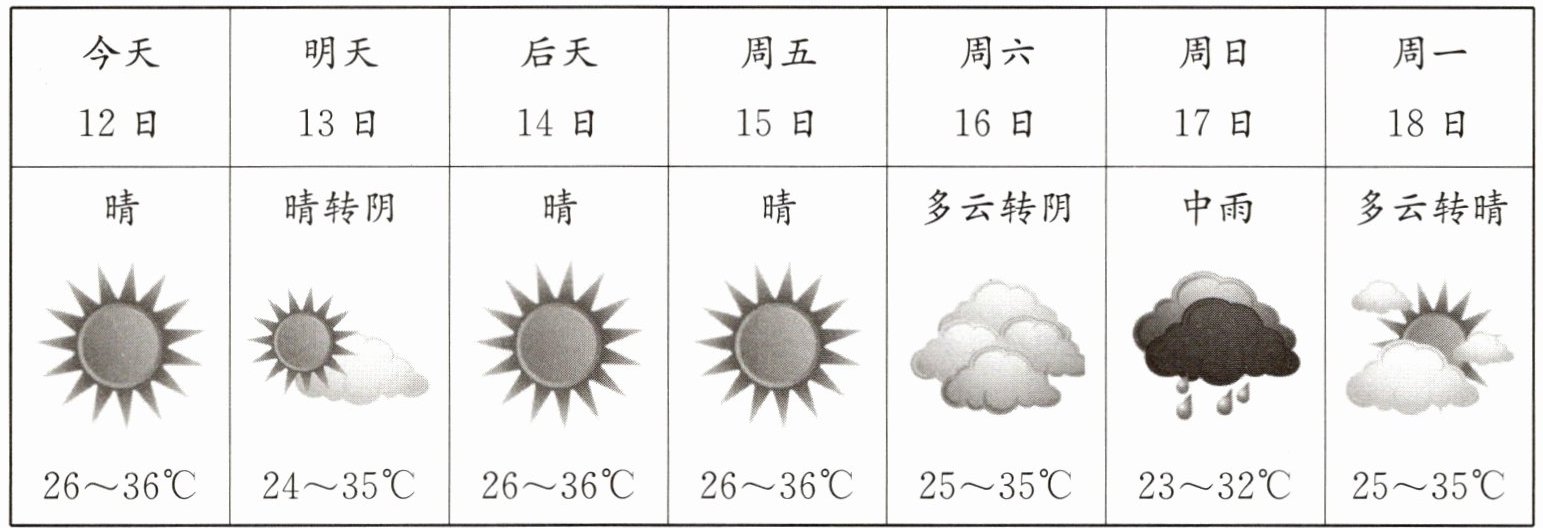 1. 从以上天气数据可以看出:该地最近天气________,最高气温是________℃,外出时适合穿________的衣服。