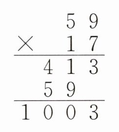 妈妈从家到商场买东西。她每分钟走 59 米,走了 17 分钟正好到达。请根据左面的竖式完成填空。