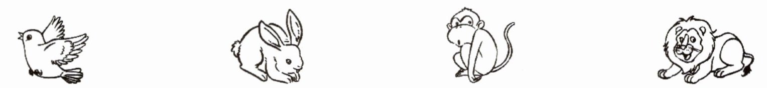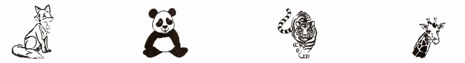 1. elephant 2. tiger 3. duck 4. monkey 5. panda 6. cat 7. dog 8. bird 9. fox 10. giraffe (长颈鹿) 11. rabbit 12. lion