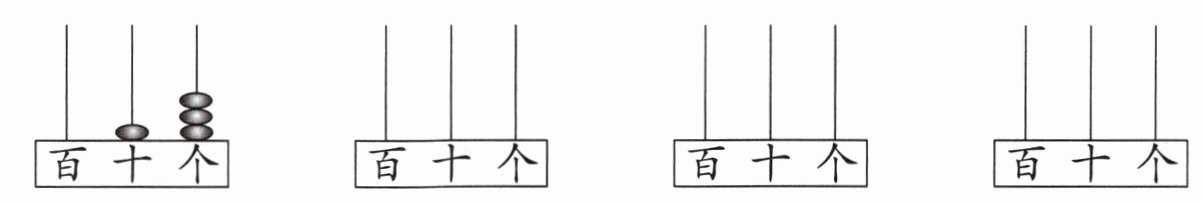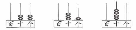 【解析】:根据计数器表示数的规则,4个珠子表示两位数,就是把4分成两个数(0除外,因为两位数的十位不能为0)相加,$4 = 2 + 2$,$4 = 3 + 1$,$4 = 4 + 0$。