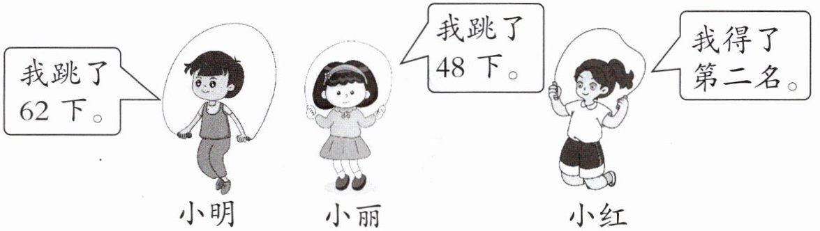 已知小明跳了$62$下,小丽跳了$48$下,小红得了第二名。