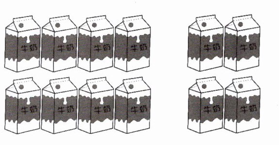 左边有$8$盒牛奶,右边有$4$盒牛奶,牛奶总数$8 + 4=12$盒。