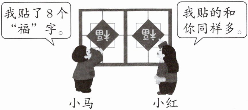 【解析】:已知小马贴了$8$个“福”字,小红贴的和小马同样多,所以小红也贴了$8$个。那么两人一共贴的数量为$8 + 8 = 16$(个)。而一共有$17$扇窗户,每扇窗户要贴一个福字,$16\lt17$。