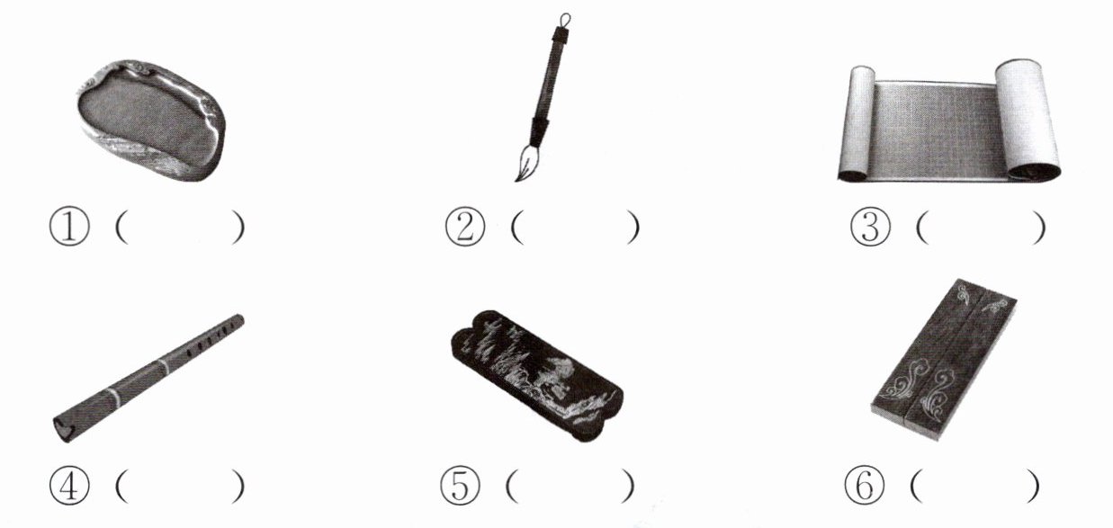 四、读一读,选出下列图片中的“文房四宝”,在括号里打“√”。