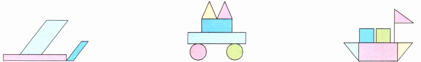 (3)下面三幅图中,共有()个长方形、()个正方形、()个平行四边形、()个三角形和()个圆。